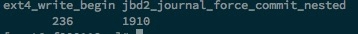 printf("%10s %10s\n","ext4_write_begin","jbd2_journal_force_commit_nested");